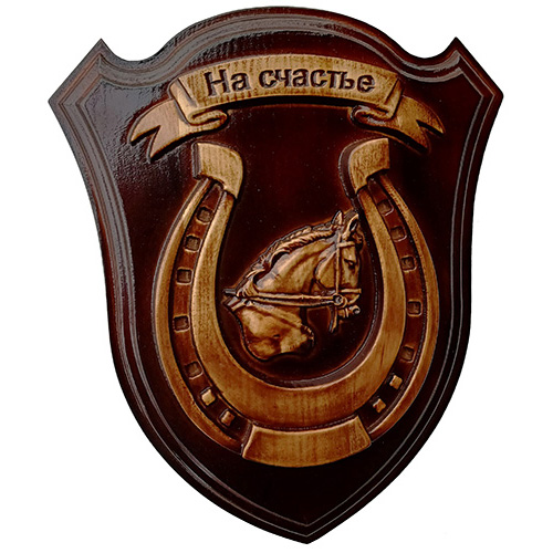 Медальон с изображением подковы и головы огненной лошади.